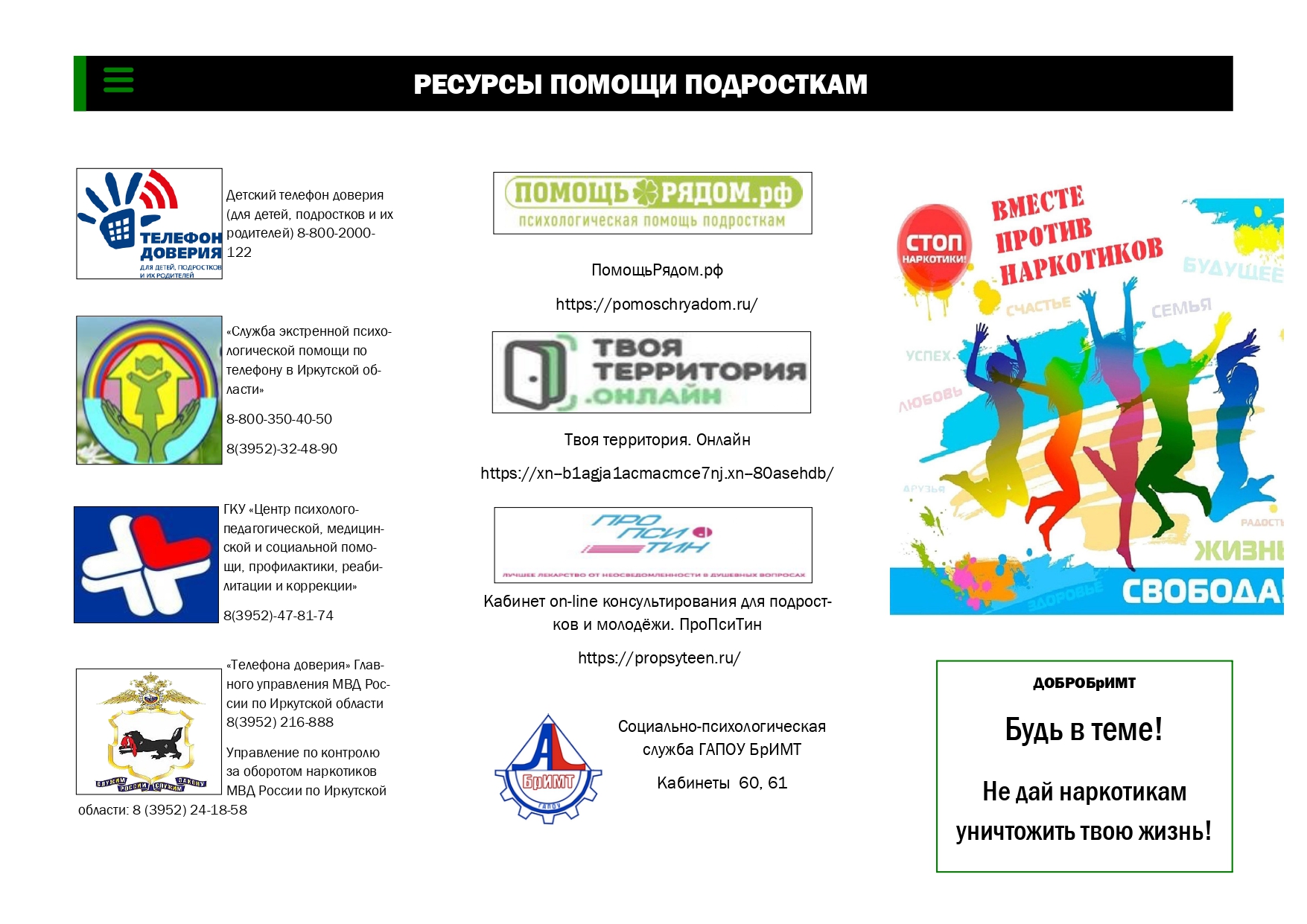 • Соглашение о сотрудничестве между министерством по молодежной политике Иркутской области, областным государственным казенным учреждением «Центр профилактики нapкoмaнии» и ГАПОУ БрИМТ