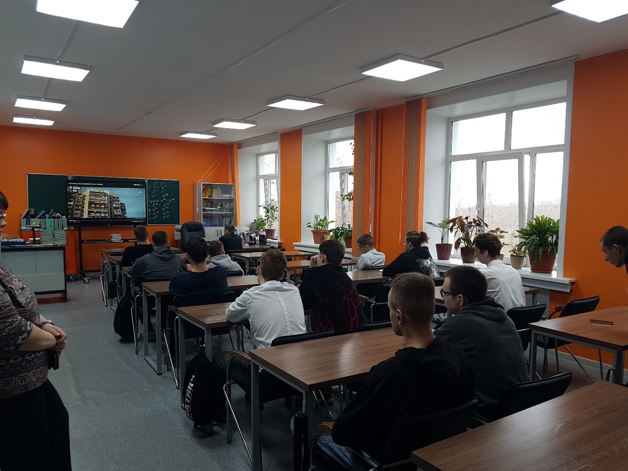 • Кабинет № 17: стационарный класс (13 ноутбуков, 1 персональный компьютер, 1 интерактивная доска, 1 плоттер);