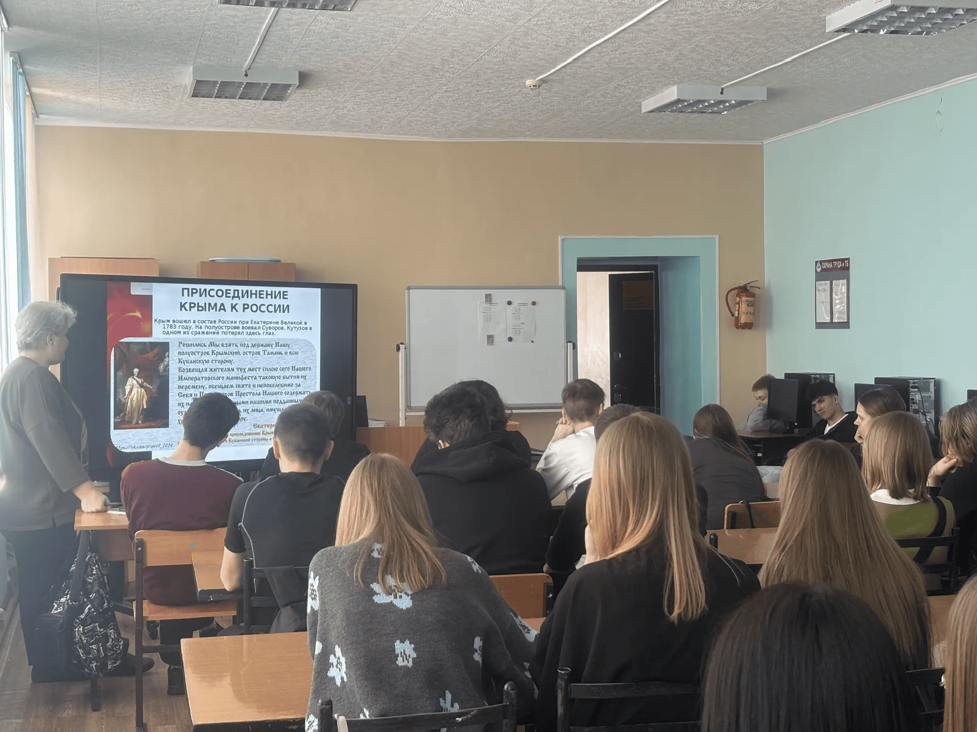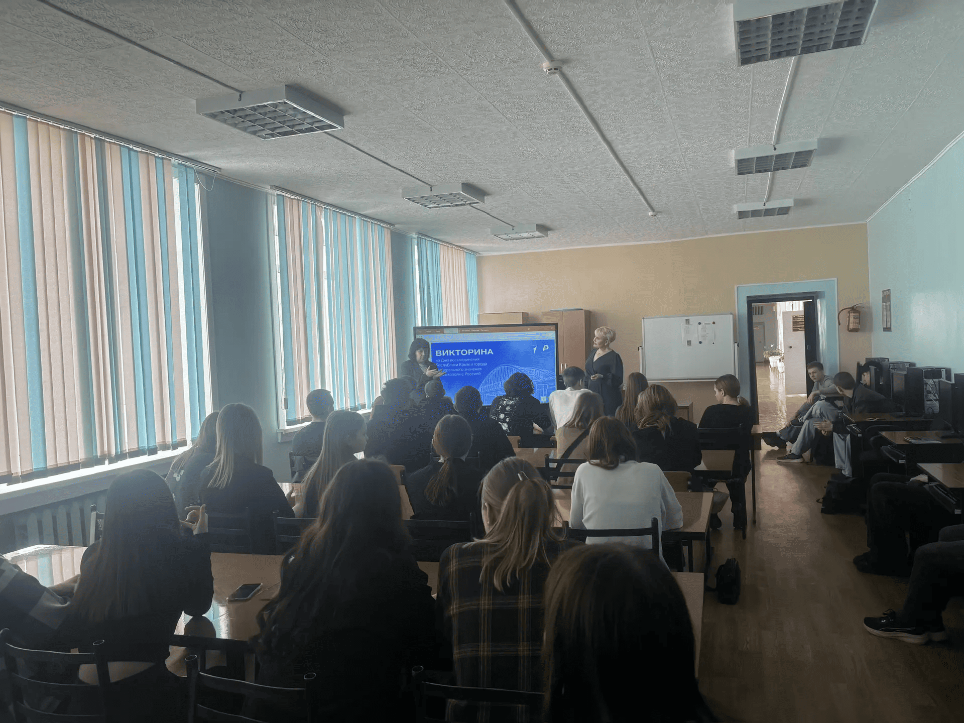 18.03.26 ко Дню воссоединения Крыма с Россией преподаватели Курамаева Ю. Б., Сафронова Н. Е., библиотекарь Шевченко Л. В. при поддержке амбассадора ФП « Профессионалитет» Григорьева А. провели классный час «Воссоединение Крыма с Россией: история и современность» для групп МК25 и До24. Ребята узнали об истории Крыма с древнейших времен до наших дней и приняли участие в викторине, где проверили свои знания.